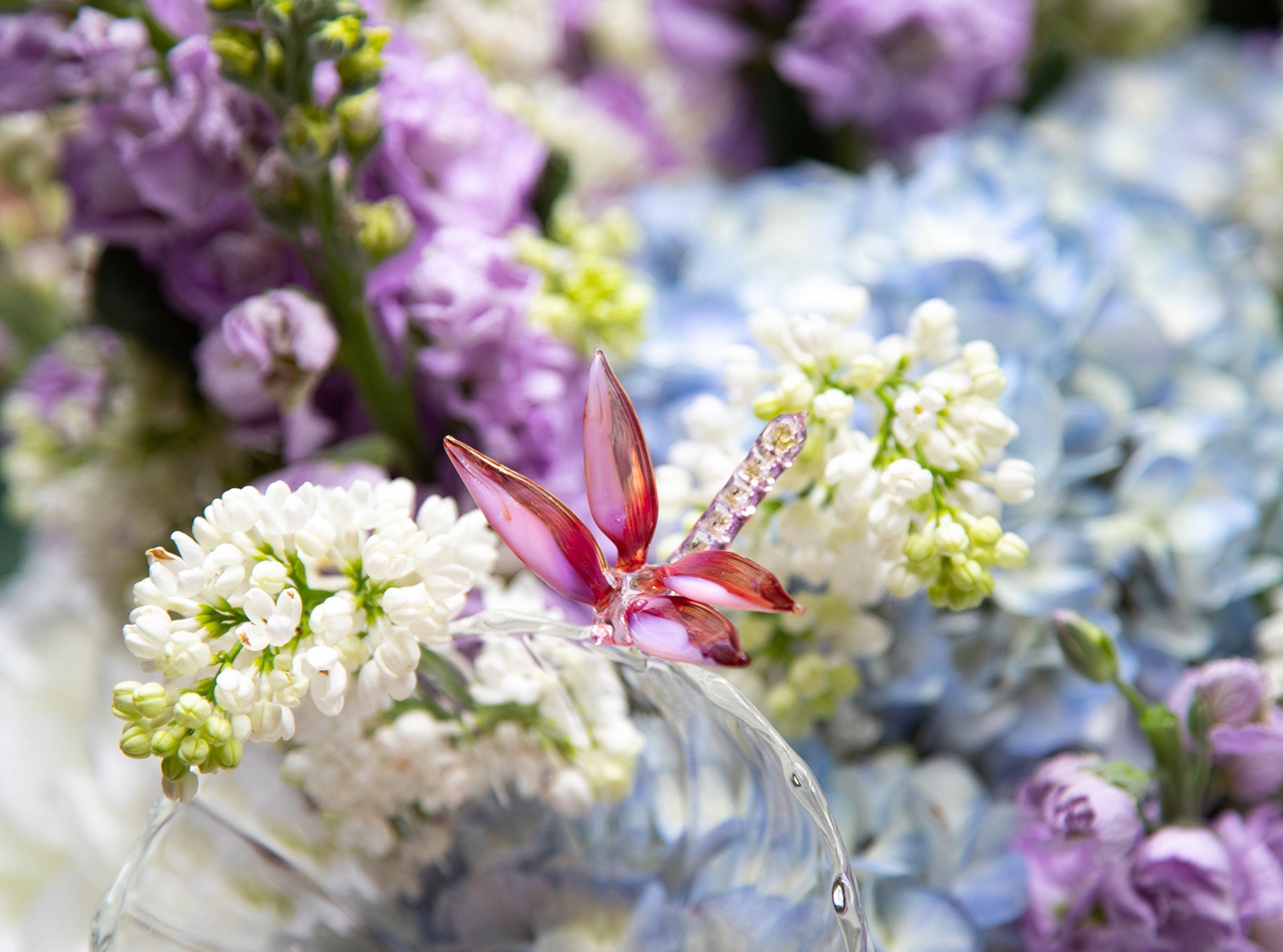 A Summerill & Bishop x Casarialto exclusive. A delicate dragonfly napkin ring, handmade by master glassblowers, with shades of pink to complement the most elegant of table settings and to celebrate the nuances of springtime nature.